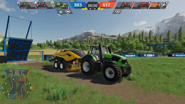 Her iki takım da coşkuyla harekete geçince (bazıları araçlarla ön bile kaldırır) çiftçiliğin nasıl rekabetçi bir hâl aldığını göreceksin. Ekipman haritanın rastgele bölgelerine bırakılır ve her oyuncu ekinlere girmek için hızlıca ona bağlanmak zorundadır.
